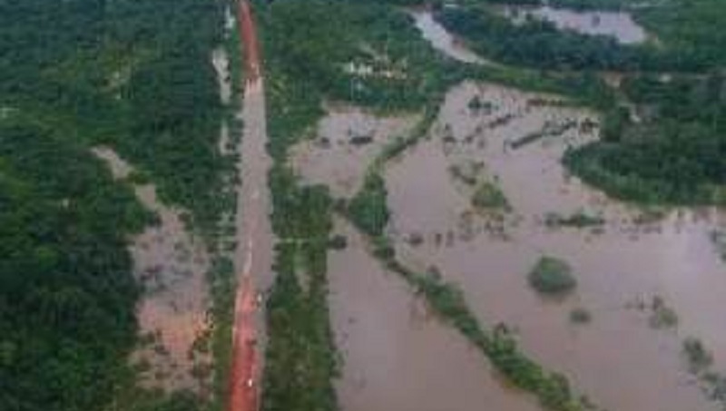 Trecho da rodovia Transamazônica inundado pelas enchentes e chuvas na região. – Créditos: Foto: Jonas Meneses
