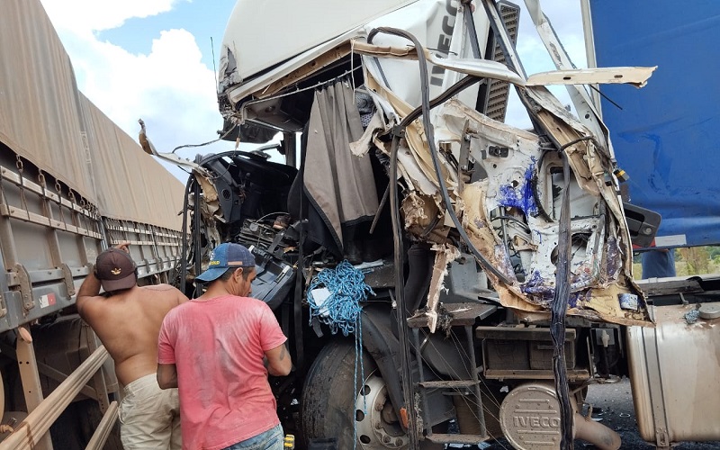 (Foto: Jornal Folha do Progresso) – No incidente que ocorreu na BR 163, próximo à cidade de novo Progresso, a roda de um caminhão se soltou na pista, o motorista perdeu o controle do veículo e acabou colidindo com outro caminhão que vinha no sentido contrário.