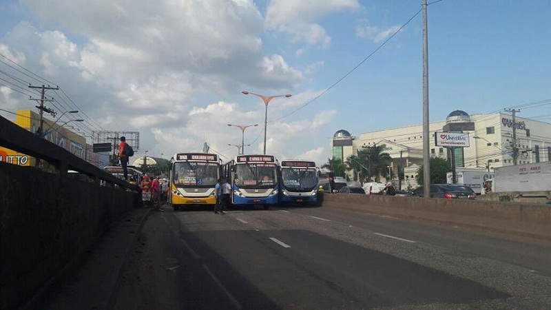 Os ônibus que estavam na Estrada da Providência participam da manifestação no Entroncamento, e o ato deixa longo engarrafamento na rodovia BR-316.