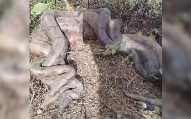 Nas imagens, é possível ver os três animais no chão enrolados uns aos outros das caldas às cabeças. De acordo com o biólogo Edson Abraão, os animais que aparecem no vídeo são jiboias.