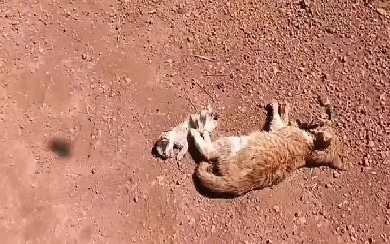 Vídeo mostra um caminho na entrada com os gatos mortos. A população está assustada com o ato cruel contra os animais