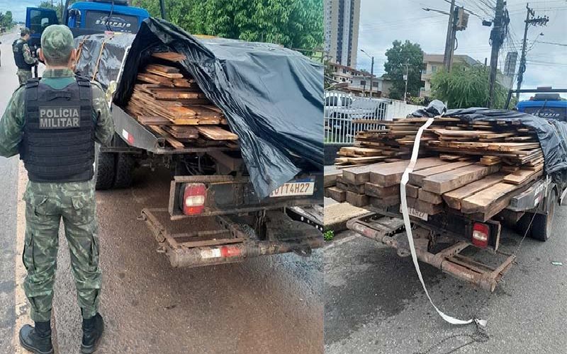 O veículo estava sendo conduzido por Francisco Silvaney Sales Sampaio e transportava cerca de 5m³ de madeira ilegal.