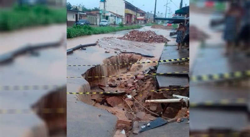 Conforme imagens de moradores do bairro do Santana, o trafego de veículos também ficou prejudicado na Avenida Dom Federico Costa, entre as travessas Tropical e Santos Dumont, cujo uma grande cratera se abriu.
