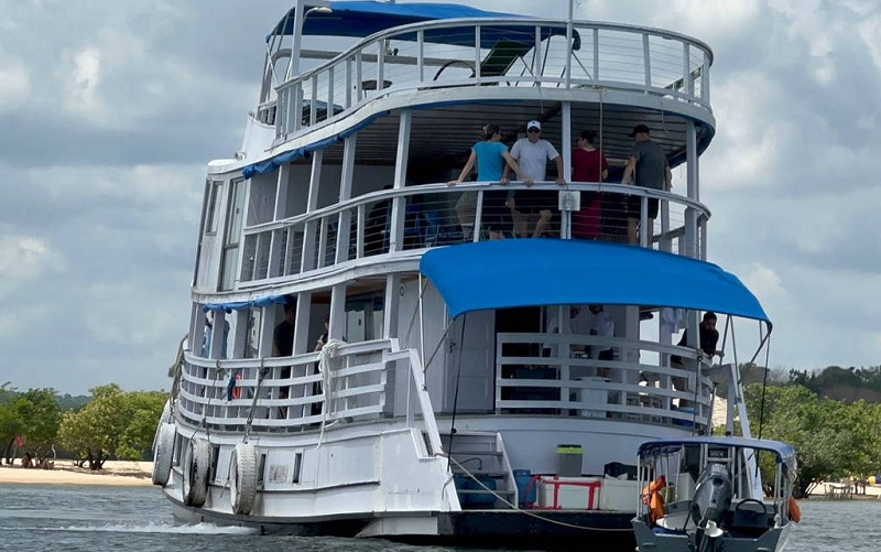 O presidente Lula passou a manhã e o início da tarde deste sábado (5) em passeio de barco pelo rio Tapajós na região de Alter do Chão, distrito de Santarém (PA). (Foto:Natashia Santana)