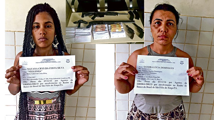 Investigações da Polícia Civil resultou em prisão, identificação e morte de envolvidos no assalto a agencia do Banco do Brasil, na cidade de São Felix do Xingu, na semana passada. Duas mulheres foram presas durante uma operação que tinha como objetivo prender os acusados de envolvimento no assalto. Sandra Lúcia Domingues, 41 anos, natural da cidade da cidade de Conselheiro Pena-MG, foi presa juntamente com Nayana Cris da Costa, 29 anos, vulgo ‘’Neguinha’’ natural da cidade de Londrina-PR, acusadas de envolvimento com a quadrilha que executou o assalto na modalidade vapor em São Felix do Xingu na última sexta, dia 2.
