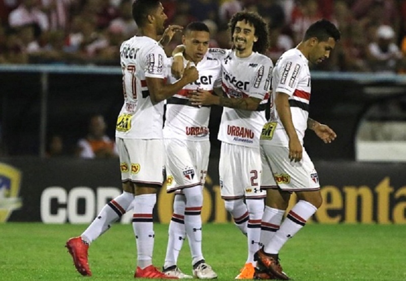 Fonte: Gazeta Esportiva (foto: Rubens Chiri) – Sem sustos, o São Paulo se classificou para a quarta fase da Copa do Brasil durante a noite desta quarta-feira. Ainda sob o comando interino de André Jardine e observado por Diego Aguirre dos camarotes do Estádio Rei Pelé, o time tricolor derrotou o CRB-AL por 3 a 0, com gols de Marcos Guilherme, Valdívia e Rodrigo Caio.