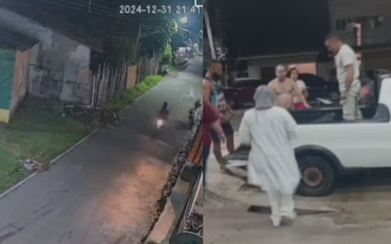 Uma câmera de monitoramento mostrou o movimento na rua onde o crime ocorreu, por volta das 21h40. Uma dupla de homens em um motocicleta efetuou os disparos contra a vítima, que caiu, mas continuou sendo baleada.