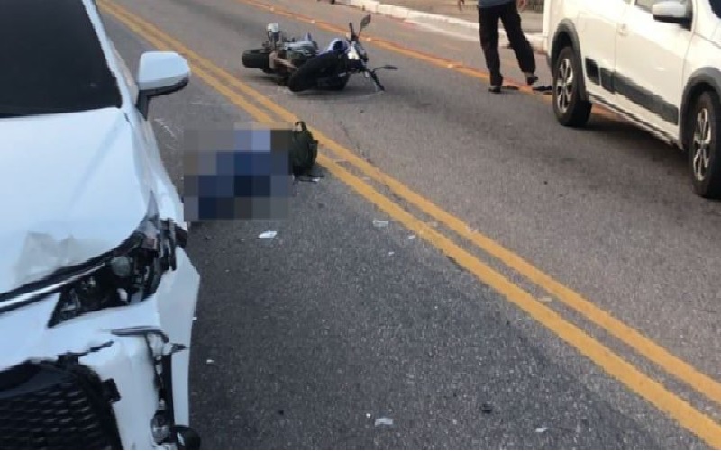 A militar conduzia uma motocicleta, quando, após tentar realizar uma ultrapassagem proibida, colidiu com um carro de passeio de um tenente da Força Aérea Brasileira (FAB).