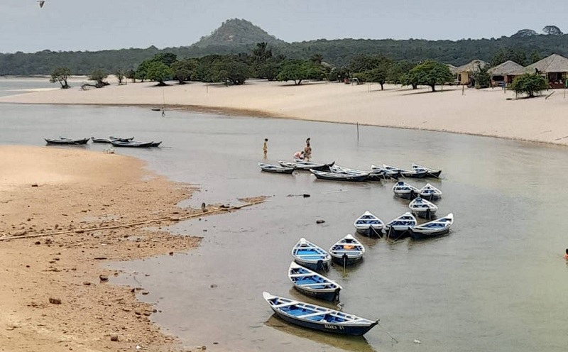 No canal que liga a vila à Ilha do Amor, onde no período chuvoso (inverno amazônico) a travessia é feita através de catraias (canoas), por conta da estiagem do rio Tapajós, os banhistas agora atravessam caminhando.