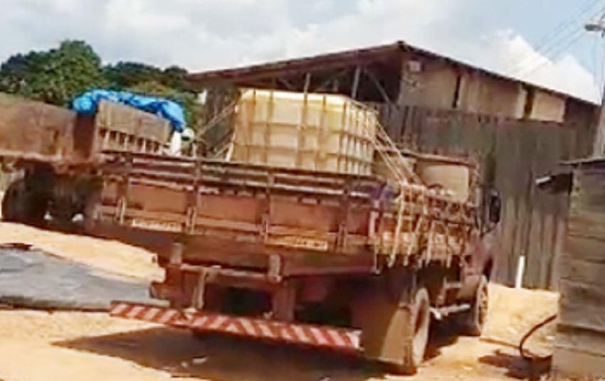 Caminhão flagrado transportando combustível da Prefeitura (Foto O Impacto)-No município de Placas, situado às margens da BR 163, o processo eleitoral está bem inóspito. De acordo com a denúncia de um Vereador da cidade, a máquina pública está sendo utilizada para angariar votos para o atual prefeito Leonir Gauchão, que busca a reeleição.