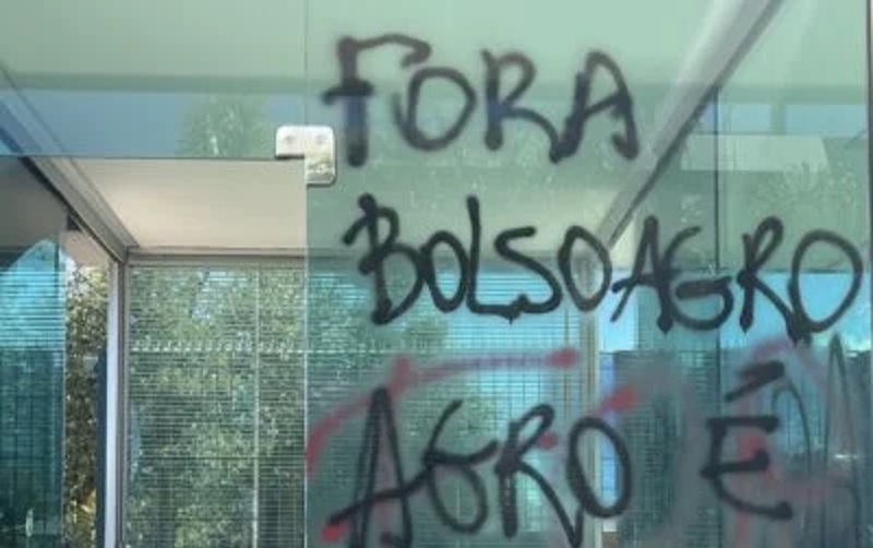 Segundo a apuração do Brasil Sem Medo (BSM), os muros e a guarita da sede da CNA foram pichados com mensagens críticas ao agronegócio e ao presidente Jair Bolsonaro.