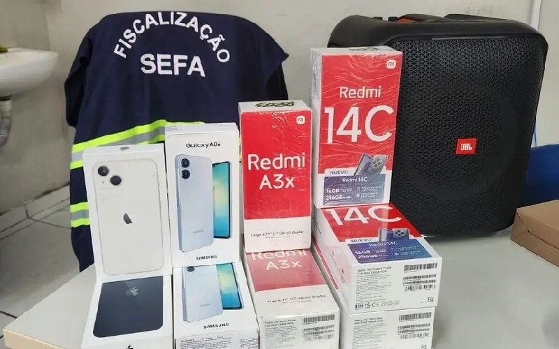 De acordo com a Sefa, por causa da inconsistência nos valores declarados os fiscais resolveram fazer a inspeção física da carga, momento em que foram encontrados diversos itens de eletrônicos transportados sem documentação fiscal. Entre os produtos encontrados estavam quatro telefones celulares e uma caixa de som. Foi emitido um Termo de Apreensão e Depósito (TAD), de R$ 5.611,19 referente a ICMS e multa.
