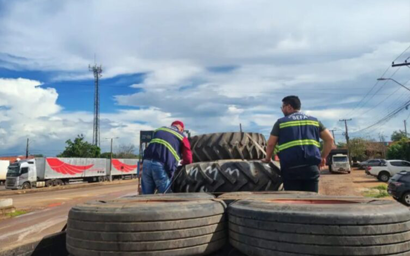 Pneus – Na Coordenação do Itinga, em Dom Eliseu, fiscais de receitas estaduais apreenderam, nesta terça-feira (21), 16 pneus de trator e caminhão, no valor de R$ 46.419,20, que saíram de Paragominas, sudeste do Pará, e tinham como destino a cidade de Sorocaba – SP.