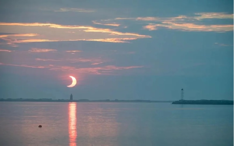 No eclipse parcial, a sombra central da Lua – responsável pelo bloqueio total – não atinge a Terra, e por isso o fenômeno é visto apenas de forma parcial.