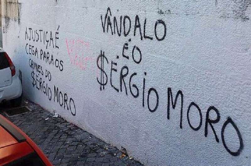 A passagem do juiz federal Sergio Moro pela Universidade de Coimbra, uma das mais tradicionais de Portugal, foi marcada por protestos. Muros da instituição amanheceram pichados nesta segunda-feira (4) com mensagens contra o magistrado.