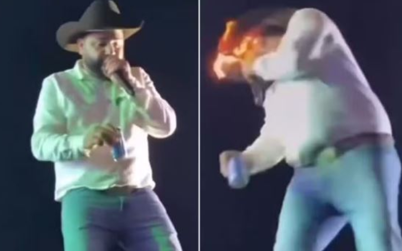 O sertanejo usou seu perfil no Instagram para compartilhar um vídeo que mostra o momento em que as chamas acionadas pela máquina atingiram a cabeça dele. Léo jogou o chapéu no chão e conseguiu apagar o fogo com as mãos antes mesmo de receber apoio da equipe.