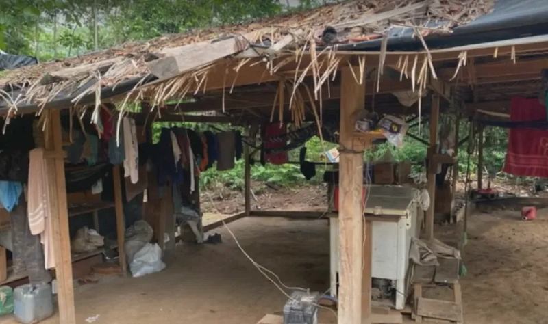 No local, cinco trabalhadores estavam alojados em barracos construídos perto de cursos d’água, cobertos de lona plástica e palha. Dentre eles, havia uma mulher, cozinheira da equipe.