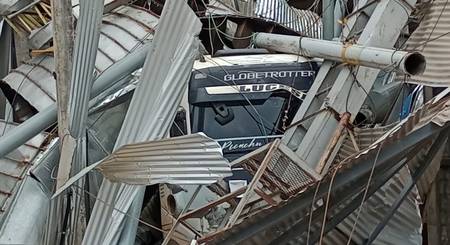 Caminhão ficou entre as ferragens – (Fotos:Via WhatsApp Jornal Folha do Progresso)