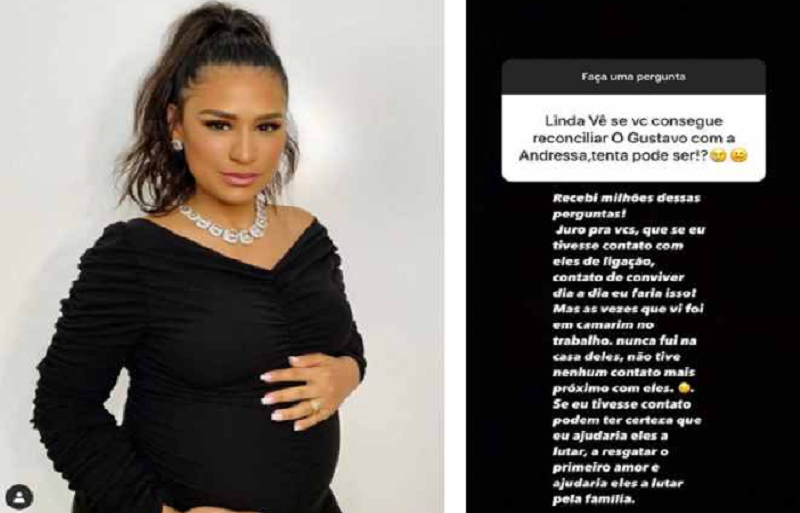 “Recebi milhões dessas perguntas! Juro pra vocês que seu tivesse contato com eles de ligação, contato de conviver no dia a dia, eu faria isso! Mas as vezes que os vi foi em camarim de trabalho. Nunca fui à casa deles, não tive contato mais próximo com eles. Se eu tivesse contato, podem ter certeza que eu ajudaria eles a lutar a resgatar o primeiro amor e a lutar pela família”, escreveu.