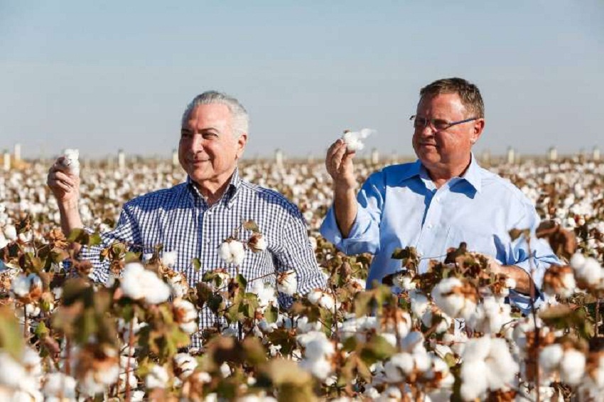 Temer e Maggi no campo de algodão: O presidente Michel Temer (PMDB) e o ministro da Agricultura, Blairo Maggi, na abertura da colheira de algodão em Lucas do Rio Verde (MT) © PR O presidente Michel Temer (PMDB) e o ministro da Agricultura, Blairo Maggi, na abertura da colheira de algodão em Lucas do Rio Verde (MT)