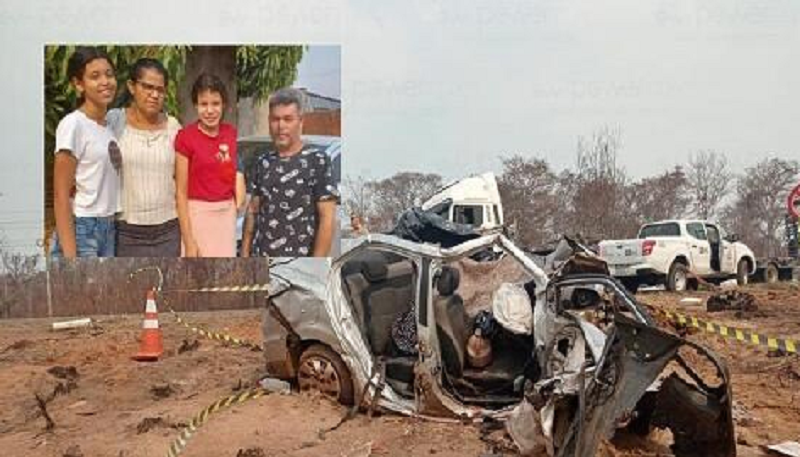 (Foto: Power Mix/Arquivo Pessoal) – Quatro pessoas da mesma família morreram, e uma ficou gravemente ferida, após se envolverem em um grave acidente entre um carro de passeio e uma carreta, na manhã desta quarta-feira (07), por volta das 11h00, no Km 567 da BR-163, cerca de 26 km de Nova Mutum/MT, sentido sul.