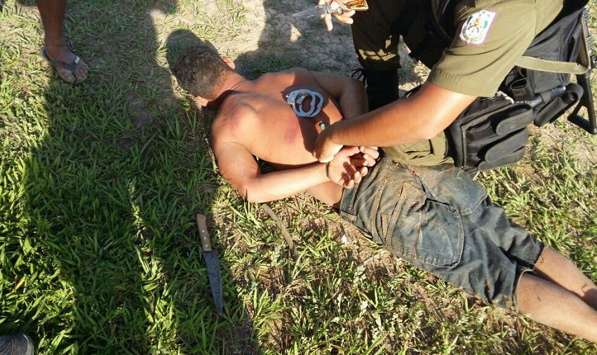 A Policia militar foi chamada e as vitimas socorridas pelo SAMU. A Policia militar na guarnição do Sargento Rilton e composta pelo cabo Francisco e soldado Thiago – saíram em diligencia atrás do criminoso que tinha se evadido do local, em perseguição já no bairro Jardim Europa prenderam em flagrante “ Adalberto Liandra Carvalho”, de 27 anos “ que esta na residência das vitimas e tentou matar os tios com uma faca de cozinha.