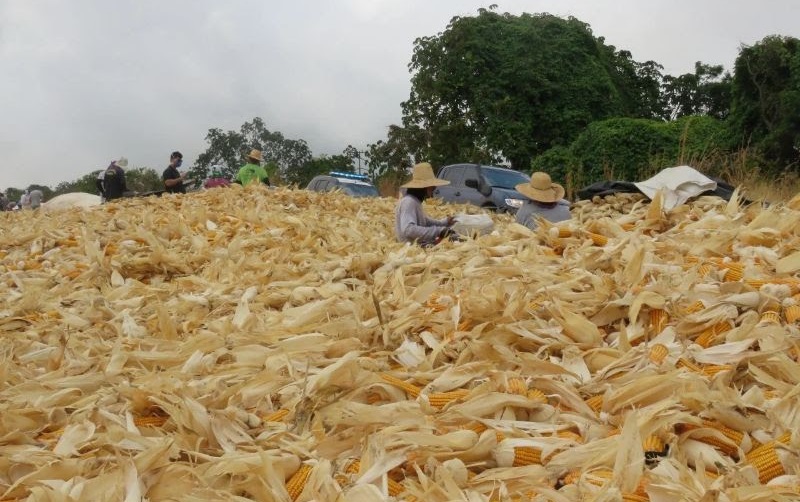 Trabalhadores separando a palha da espiga do milho (Foto: Grupo Especial de Fiscalização Móvel/Divulgação)