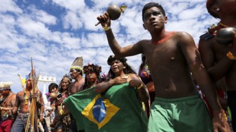 Nesta terça-feira (24), indígenas de várias etnias e regiões do país protestaram na Esplanada dos Ministérios, em Brasília, contra as medidas que dificultam a demarcação de terras e incentivam atividades de garimpo.