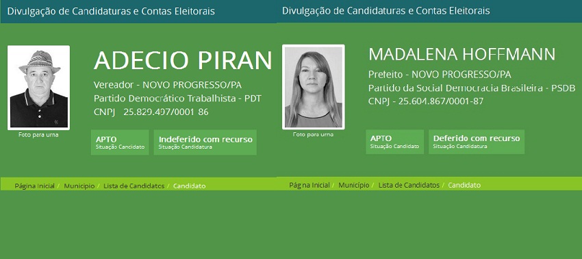 A cinco dias das eleições municipais, dois candidatos um a prefeito e outro a vereador em Novo Progresso podem ir para as urnas no próximo domingo ainda sem saber se poderão tomar posse caso sejam eleitos. Ou seja, podem até ganhar, mas correm o risco de não assumir o cargo. Isso acontece porque esses políticos estão com as candidaturas deferidas Sob Judice, e o Tribunal Eleitoral (TRE) ainda não julgou os recursos. NO caso do Vereador Adecio Piran (PDT) teve o indeferimento pela 91º zona eleitoral, por inelegibilidade na ficha limpa, segundo o entendimento da justiça o candidato vai ficar inelegível até dia 31 de dezembro de 2016, o candidato recorreu ao TER em Belém e aguarda julgamento.