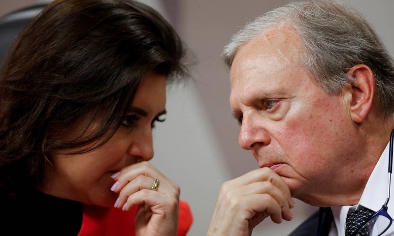 Senadora Simone Tebet e o senador Tasso Jereissati durante sessão da CCJ da Previdência (Foto: Adriano Machado / Reuters)