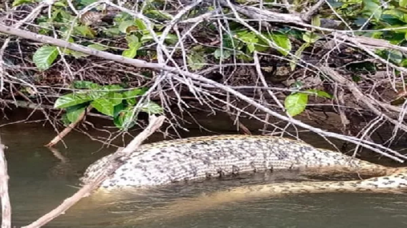 Sucuri de 5 metros é encontrada morta em rio de MS. — Foto: BNC Notícias