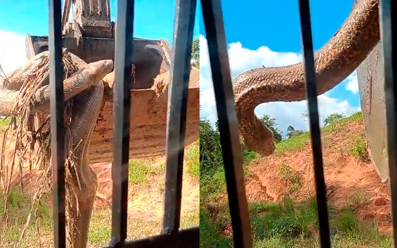 Uma sucuri foi encontrada por moradores nas proximidades do Rio Jamanxim , em Novo Progresso, e foi resgatada, na tarde desta segunda-feira,8 de abril de 2024, foi necessário o auxílio de uma escavadeira para resgatar o animal.