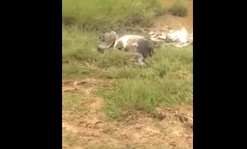 Sucuri gigante tenta engolir vaca, mas tem final surpreendente; vídeo
