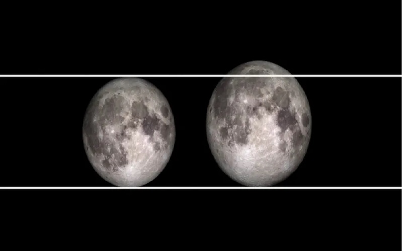 A órbita da Lua ao redor da Terra tem forma elíptica: uma forma oval que, pela sua irregularidade, aproxima e distancia o satélite do nosso planeta;