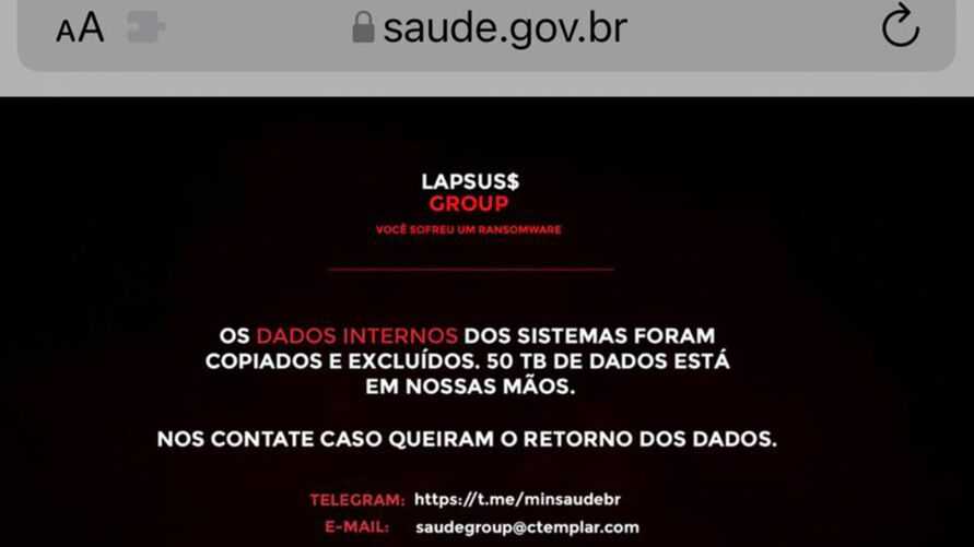 Minutos depois, o recado desapareceu, mas o site continuou fora do ar. A plataforma Conecte SUS, que fornece o certificado nacional de vacinação, também saiu do ar. O Ministério da Saúde não comentou o problema.