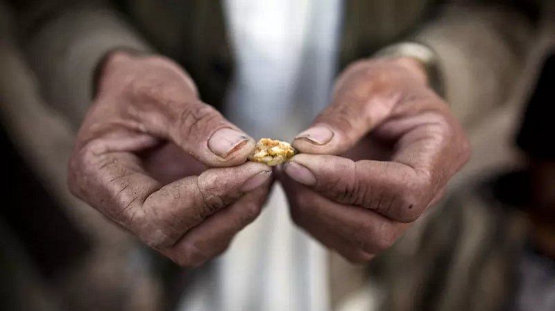 Homem afegão segura uma pequena peça de ouro, garimpada do local de uma mina proposta de Qara Zaghan em 2011