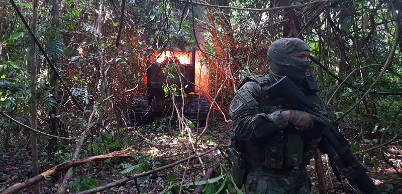 Ação de fiscalização do Ibama destroi com fogo maquinários usados para desmatar o território indígena de Ituna-Itatá, no Pará. — Foto: Divulgação/Ibama