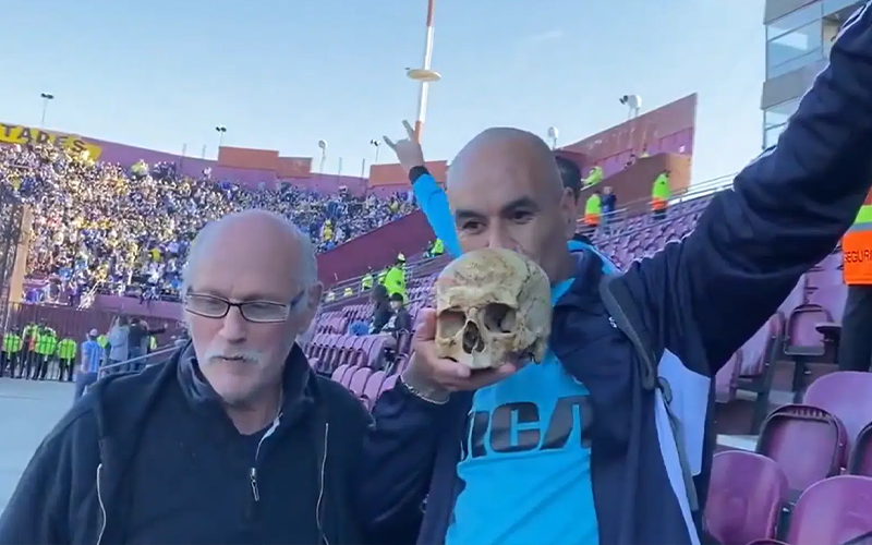 A história do crânio é absolutamente inusitada, mas, no meio da torcida do Racing, parece ser mais um dia comum.