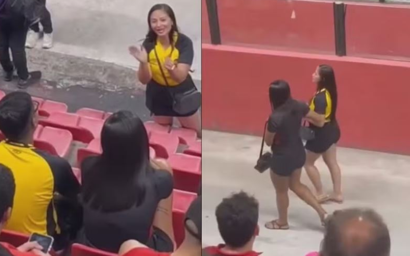Uma mulher flagrou o companheiro junto com a amante no jogo de futebol entre Sport e Ceará, pela Série A do Campeonato Brasileiro, na noite de quarta-feira (15), na Ilha do Retiro, estádio que fica no bairro de mesmo nome, na Zona Oeste do Recife. A situação inusitada foi filmada por outro torcedor, e as imagens foram postadas no Instagram (veja vídeo acima).
