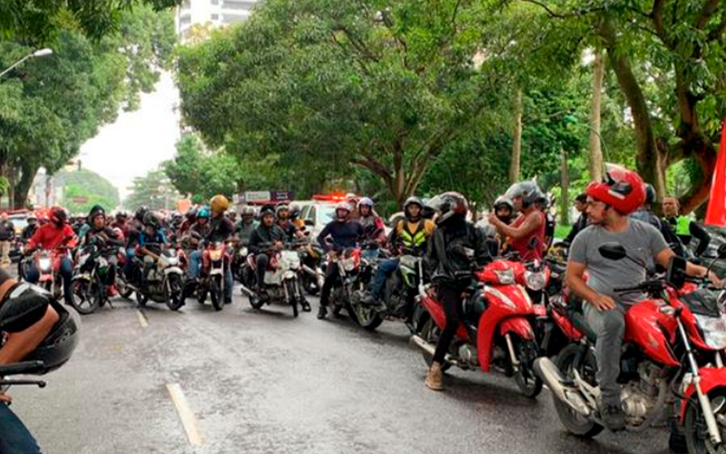 Trabalhadores que fazem entrega em motos realizam protesto em Belém
