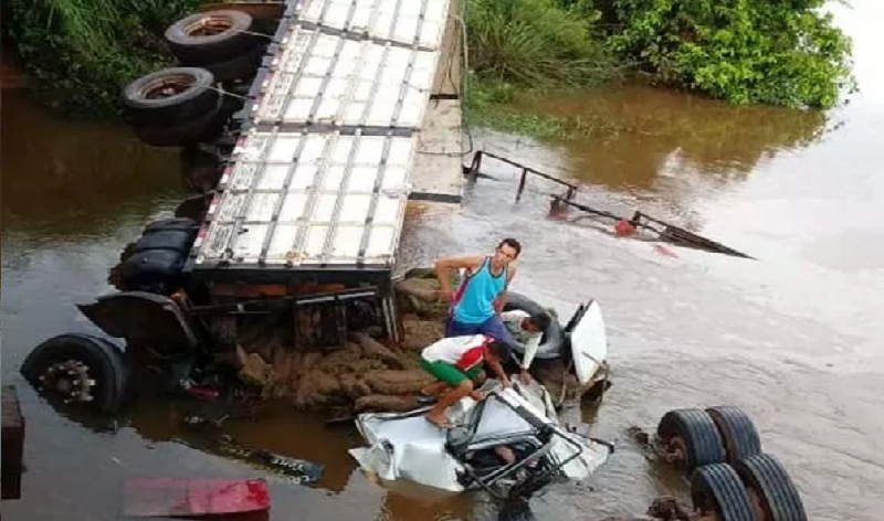 Caminhões se chocam e caem de ponte na Transamazônica – duas pessoas mortas