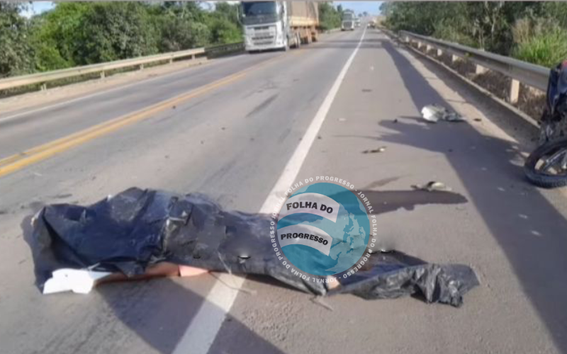 Foto: Reprodução | Na tarde deste sábado (14), um grave acidente foi registrado na BR-163, no km 1000, cerca de 85 quilômetros de Novo Progresso. A tragédia aconteceu próximo ao restaurante Tubarão e envolveu uma motocicleta e uma carreta.