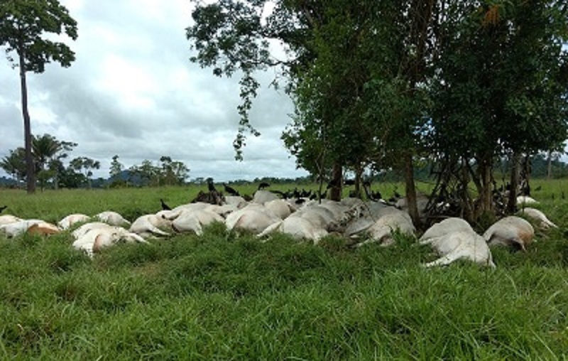 A Agência de Defesa Sanitária Agrosilvopastoril do Estado de Rondônia (Idaron) esteve no local comprovante a causa da morte dos animais.