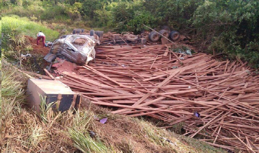 O acidente com um caminhão carregado de madeira beneficiada, saiu da pista e capotou na curva da lago, o local fica a 12 km de Altamira sentido Brasil Novo. Segundo testemunhas o veículo estava em alta velocidade e o motorista não conseguiu manter o caminhão na pista.