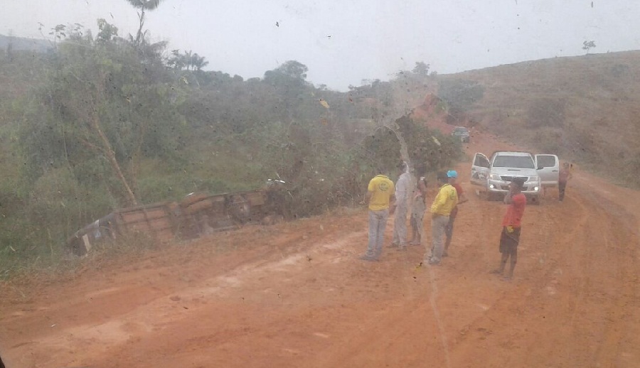 Um micro-ônibus de passageiros capotou ao subir a serra do São Chico na rodovia PA – Transgarimpeira na tarde desta segunda-feira (21)- (Divulgação Foto WhatsApp)
