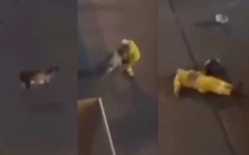 O impacto do animal contra o funcionário fez com que o capacete da vítima fosse arremessado ao chão.