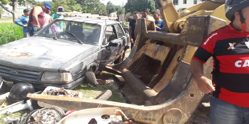 De acordo com testemunhas, a máquina estava desengatada, desceu a rua sem controle e atingiu os veículos que estavam estacionados. O bico da pá mecânica entrou no carro e foi o que fez com que o veículo parasse.