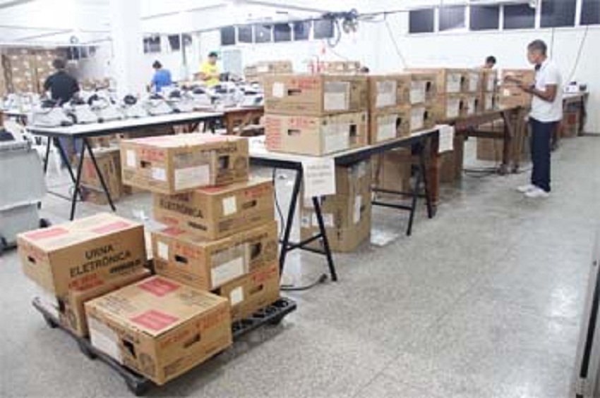 Urnas eletrônicas sendo preparadas e enviadas aos municípios