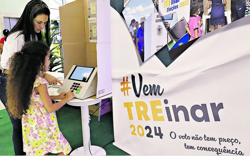 Para tirar possíveis dúvidas sobre o funcionamento do equipamento, O Tribunal Regional Eleitoral do Pará (TRE-PA) vem realizando o projeto “Vem TREinar – Eleições 2024!”, um espaço nos shoppings da região metropolitana de Belém dedicado aos eleitores para “ensaiar” o momento de votação.