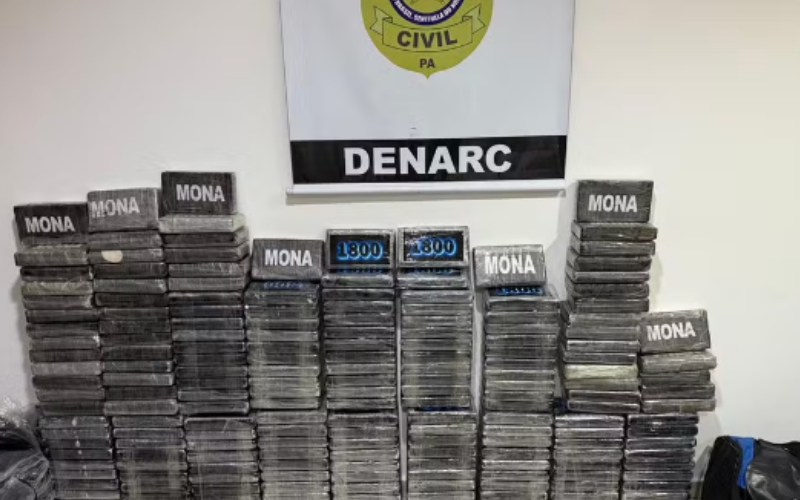 Três homens foram presos em flagrante e cerca de 200 quilos de cocaína foram apreendidos pela Polícia Civil durante uma operação realizada na sexta-feira (23), em uma propriedade rural na Vila Arienga, em Barcarena, na Grande Belém.